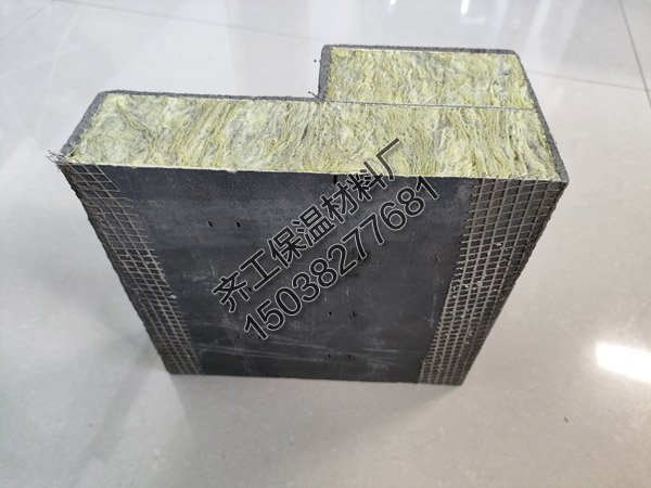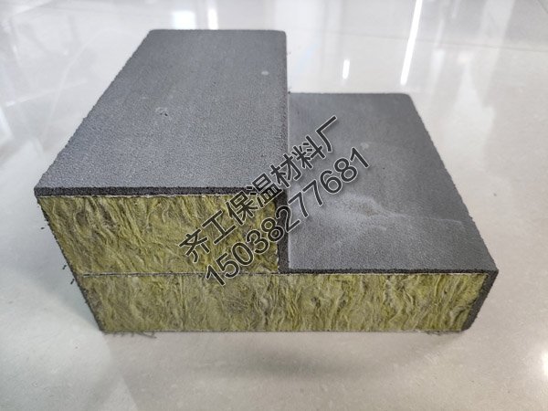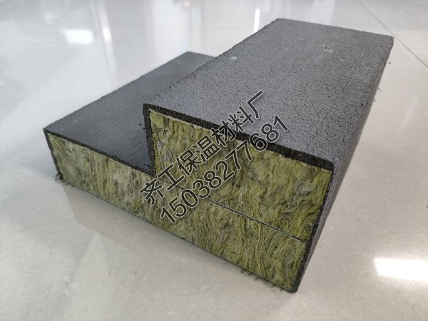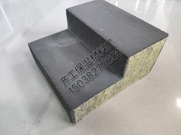 備料,按照尺寸要求切割裁剪符合容重要求以及規定尺寸的巖棉條,組合芯材外型尺寸較設計線條尺寸內縮2mm;配制薄層巖棉條粘結劑,在組合豎絲巖棉條組成的芯材本體時,在各條之間用粘結劑薄層涂覆擠壓,待干燥后形成芯材本體。